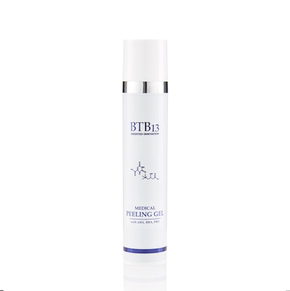 BTB13 Medical peeling gel – kuorintageelin luonnolliset AHA-, BHA- ja PHA-hapot poistavat kuolleita ihosoluja kirkastaen ihoa. Kuorinta sisältää talineritystä tasapainottavaa piparminttuöljyä sekä pajunkuoriuutetta, jolla on luonnollista tulehdusta hillitsevää vaikutusta.