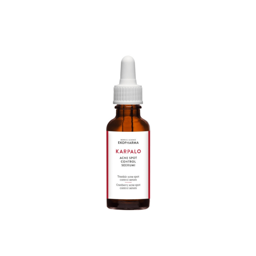 Ekopharma acne spot control seerumi 30ml on talintuotantoa hillitsevä paikallishoito ihon epäpuhtauksille. Glysiini-aminohappo puhdistaa ihon rakennetta ja tasapainottaa ihoa. Salisyylihappo edistää ihon uusiutumista sekä vähentää ihon epäpuhtauksia. Karpalouute sisältää antimikrobisia yhdisteitä, antioksidantteja ja vitamiineja, jotka suojaavat ja kirkastavat ihoa. Luonnolliset kosteuttajat ehkäisevät ihon pintakuivuutta ja ihon tukkeutumista.