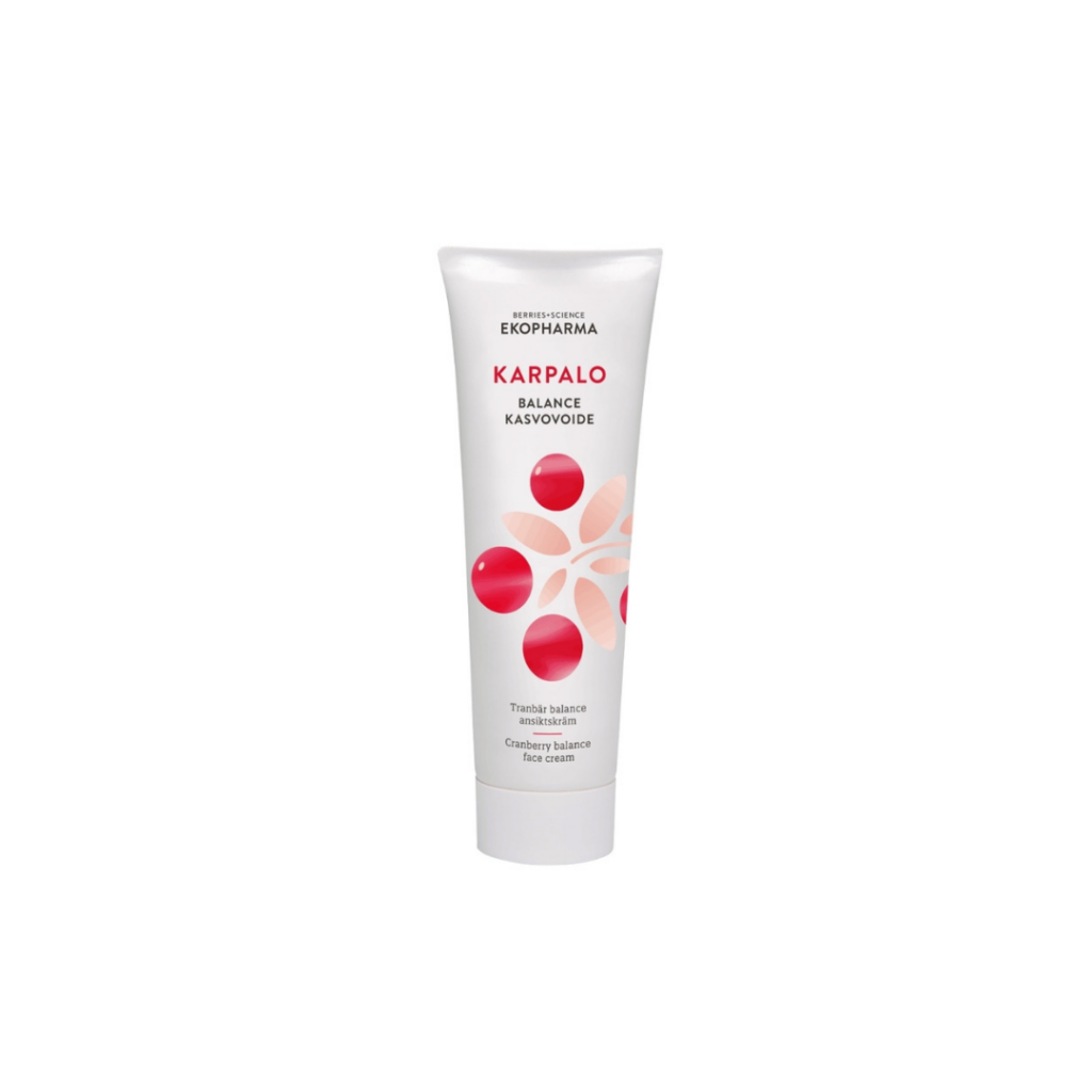 Ekopharma Karpalo balance kosteusvoide 50ml on tasoittava kasvovoide rasvoittuvalle iholle. Kasvovoide kosteuttaa ja rauhoittaa epäpuhtauksiin taipuvaista ihoa. Koivunmahla kosteuttaa ihoa tehokkaasti, taikapähkinävesi supistaa ihohuokosia ja paju-uutteen salisyylihappo hillitsee epäpuhtauksia ihosta. Antioksidanttinen ja antimikrobinen karpalouute tasapainottaa ihon toimintaa ja sinkkiglukonaatti rauhoittaa ja vähentää ihon punoitusta. Prebiootit vahvistavat ihon hyvää ja vahvaa mikrobiomia ehkäisten ei-toivottujen mikrobien toimintaa iholla.