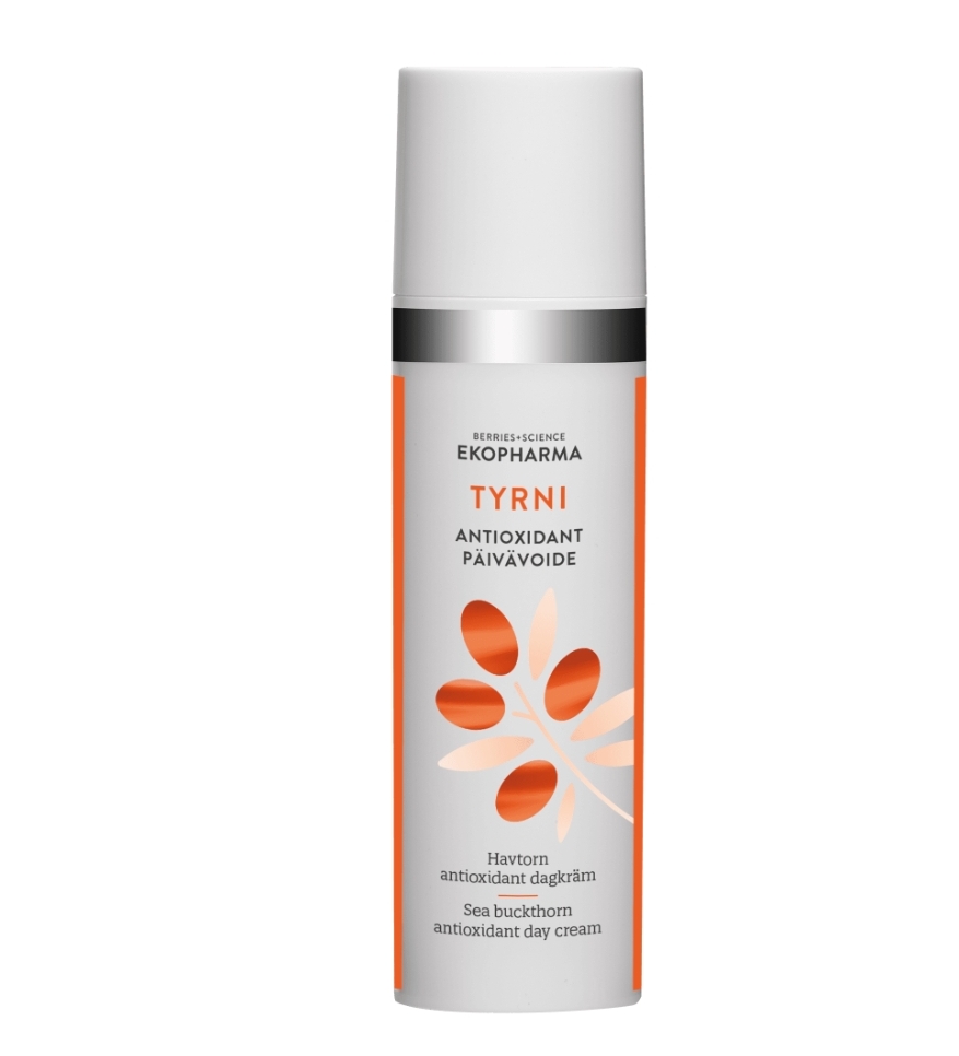 Ekopharma tyrni antioxidant päivävoide 30ml on täyteläinen, koivunmahlapohjainen kasvovoide, mikä sisältää runsaasti antioksidantteja, jotka suojaavat ihoa ympäristön haittavaikutuksilta. Tyrni ja ruusunmarja sisältävät iholle välttämättömiä, hoitavia omega-rasvahappoja sekä karotenoideja, jotka edistävät ihon uusiutumista. C- ja E-vitamiini suojaavat ihoa oksidatiiviselta stressiltä ja Q10 ehkäisee ihon valovaurioita. Antioksidanttinen päivävoide suojaa ihoa ja lisää sen nuorekasta kimmoisuutta.