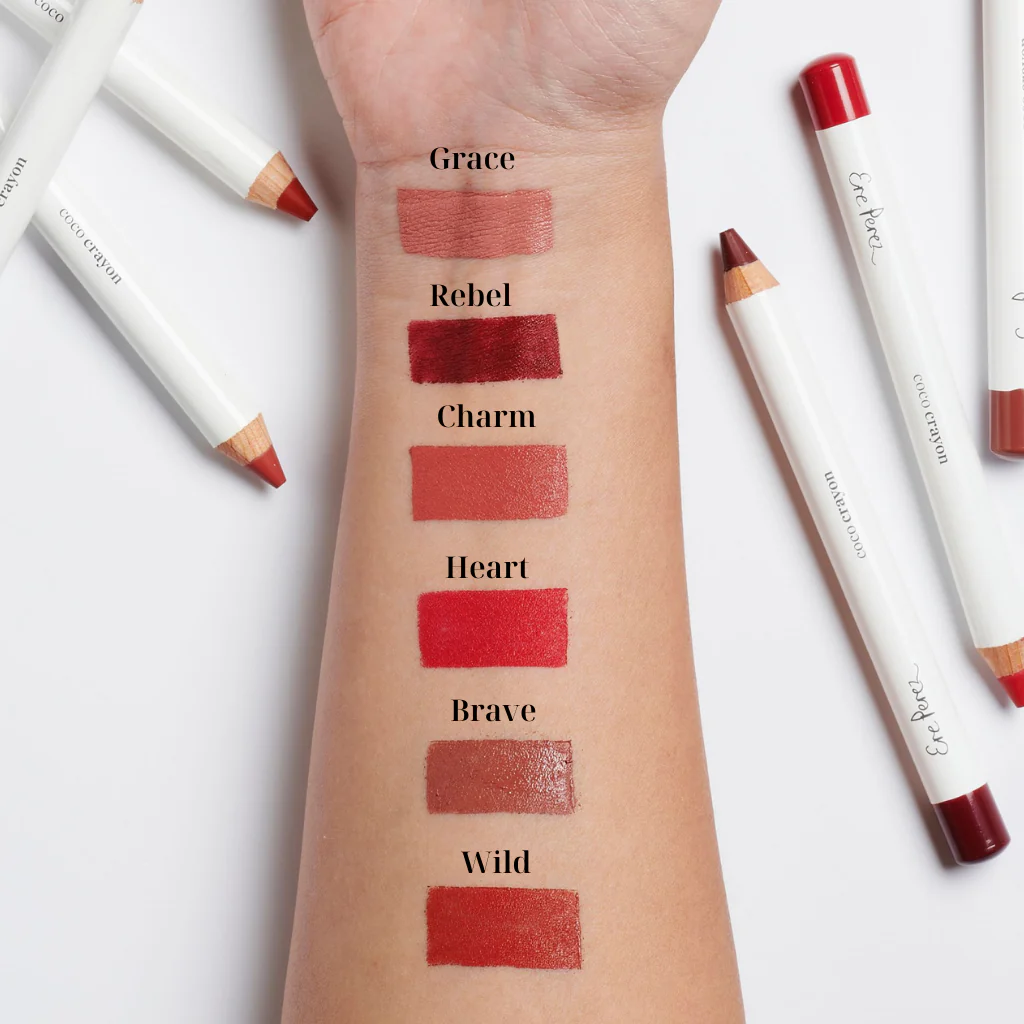 Ere Perez Coco crayon jumbo huulikynä on peittävä ja sulavasti liukuva luonnonkosmetiikan huulipunakynä. Mattainen lopputulos. Kosteuttavat ja ravitsevat ainesosat pitävät huulet mehukkaan kosteina koko päivän! Tuntuu huulilla yhtä kevyeltä, kuin huulivoide.