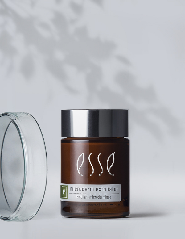 Esse microderm exfoliator – kasvokuorinta on ihoa siloittava kuorintavoide. Kuorintatuote sisältää mikropartikkeleita, jotka kuorivat ja kirkastavat hellävaraisesti herkkääkin ihoa. Pintaverenkierto paranee tehden ihon pehmeäksi, sileäksi ja puhdistetuksi. Jojoba parantaa ihon elastisuutta ja vahvistaa ihoa. Detox-vaikutteinen rooibos uudistaa ihoa, vähentää melanosyyttien pigmentaatiota ja auttaa myös parantamaan pintaverenkiertoa. Kalsiumkarbonaatti ja kaoliini ovat molemmat miedosti kuorivia ja auttavat poistamaan epäpuhtauksia ja kuolleita ihosoluja. Marulaöljy ravitsee ja kosteuttaa jättäen iholle pehmeän ja sileän tunteen. Frankincense- ja appelsiiniöljyt tuovat tuotteelle miellyttävän tuoksun. Tuotteen koostumus on hyvin sileä, joten tämä kuorinta sopii myös erittäin herkälle ja ohuelle iholle.