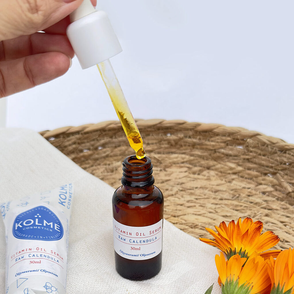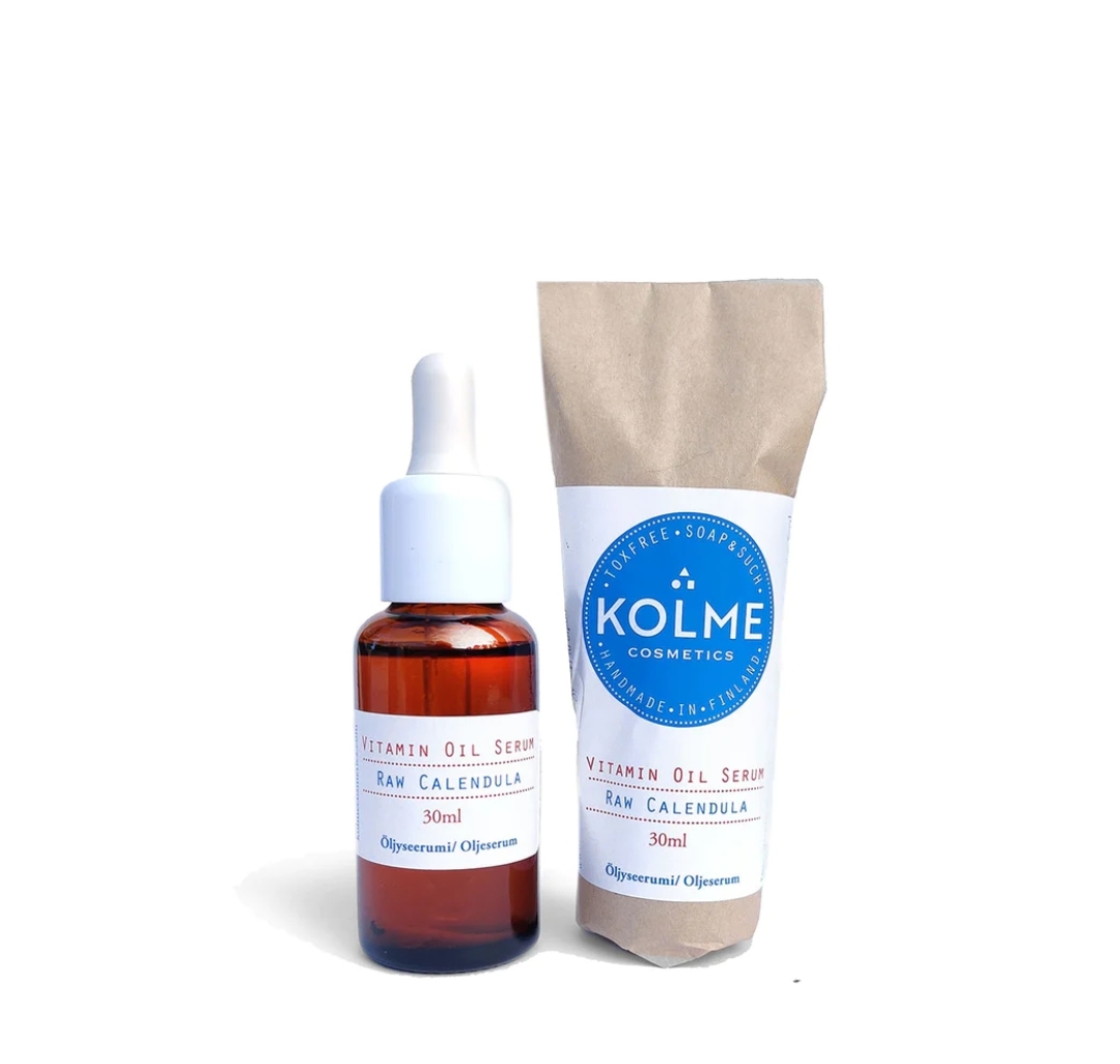Kolme Cosmetics Vitamiini Öljyseerumi, aktiivisista kylmäpuristetuista kasviöljyistä koostettu kasvoöljy ravitsee, kosteuttaa ja suojaa ihoa tehokkaasti. Ihosta tulee pehmeä, kimmoisa ja hehkuva. Öljyseerumi toimii erinomaisesti kasvovoiteen korvaajana. Sopii erinomaisesti myös silmänympärysiholle.