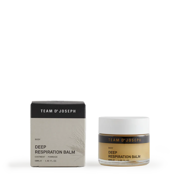 Team Dr. Joseph Deep Respiration Balm – voide 50 ml on hengitysteiden toiminnan tukemiseen ja flunssan oireiden lievittämiseen kehitetty balmi. Voide sisältää villitimjamia, mäntyä, minttua ja eukalyptusta. Voide on todellinen helpotus kylminä päivinä ja talviseen vuodenaikaan. Mausteisen lämmin ja raikas tuoksu vapauttaa ja auttaa puhdistamaan hengitysteitä ja helpottaa vilustumisen oireita. Voide on luonnollinen tuki flunssan aiheuttamien hengitystieoireiden lievittämiseen edistäen samalla koko kehon rentoutumista.